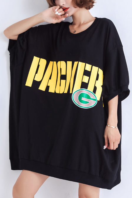 Kunst schwarze Baumwollbluse 2019 Outfits O-Ausschnitt Fledermausärmel Midi Sommertop
