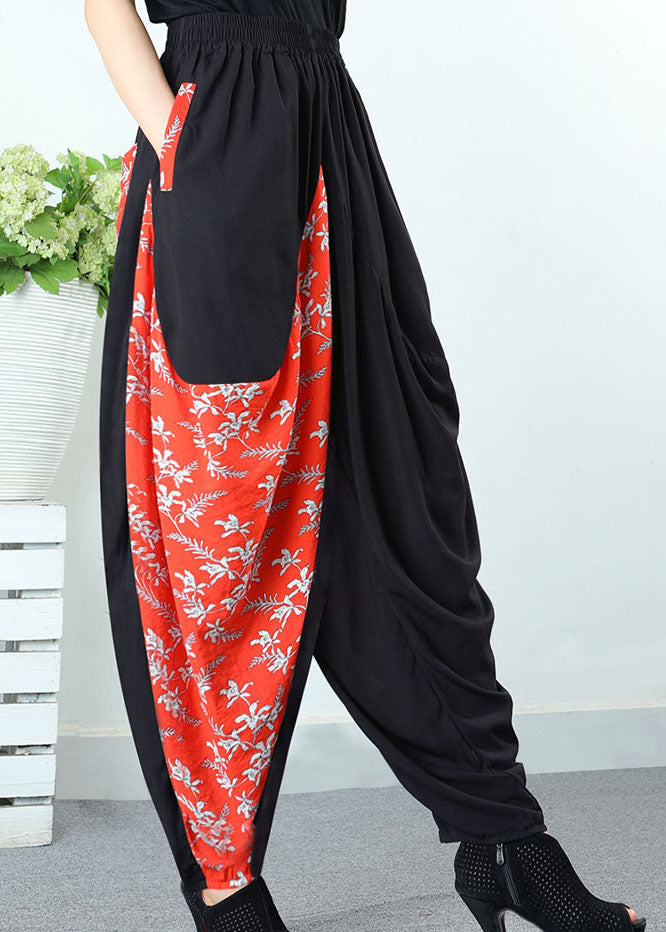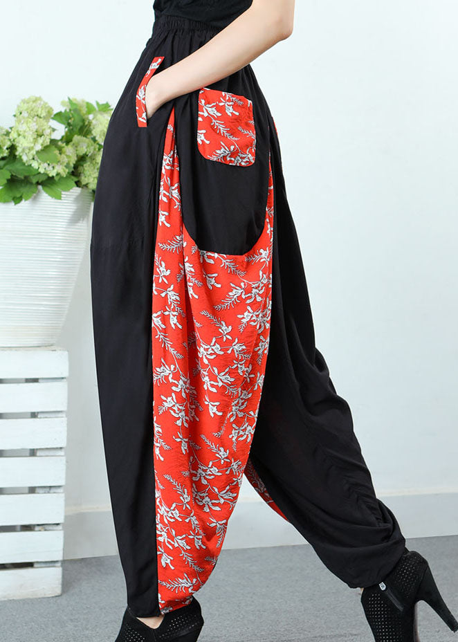 Kunst Schwarz Patchwork Orange Taschen Druck Frühling Hosen