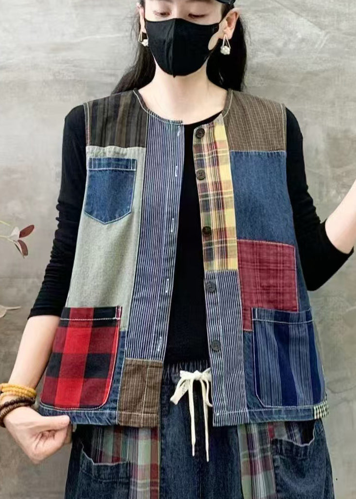Art Colorblock Asymmetrical Patchwork Cotton Vests Summer