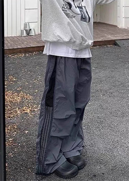 Art Khaki Wrinkled Drawstring Patchwork Cotton Mens Pants Summer