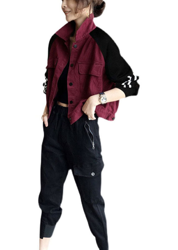 Art Mulberry Patchwork Schwarz Taschen Knopf Herbst Denim Mantel Langarm