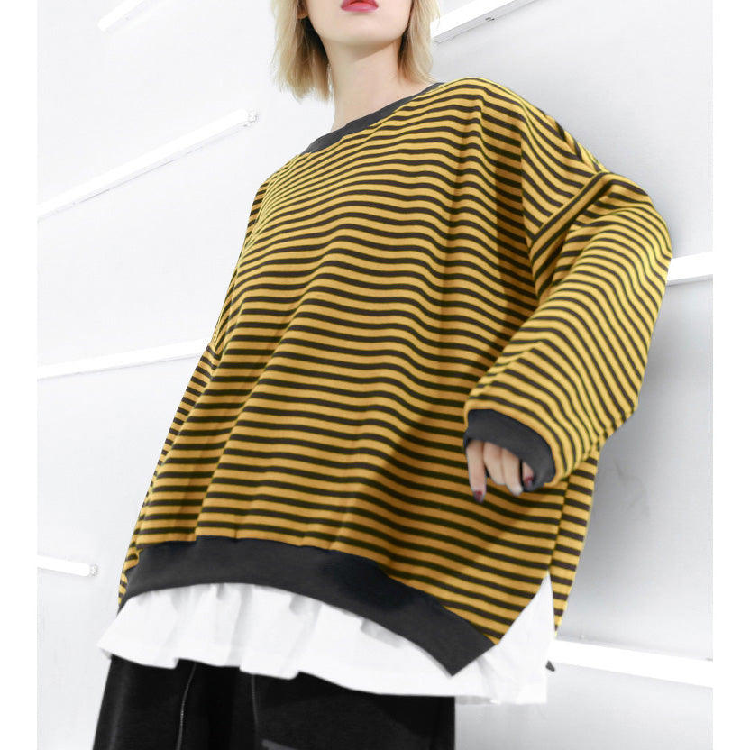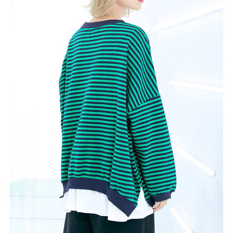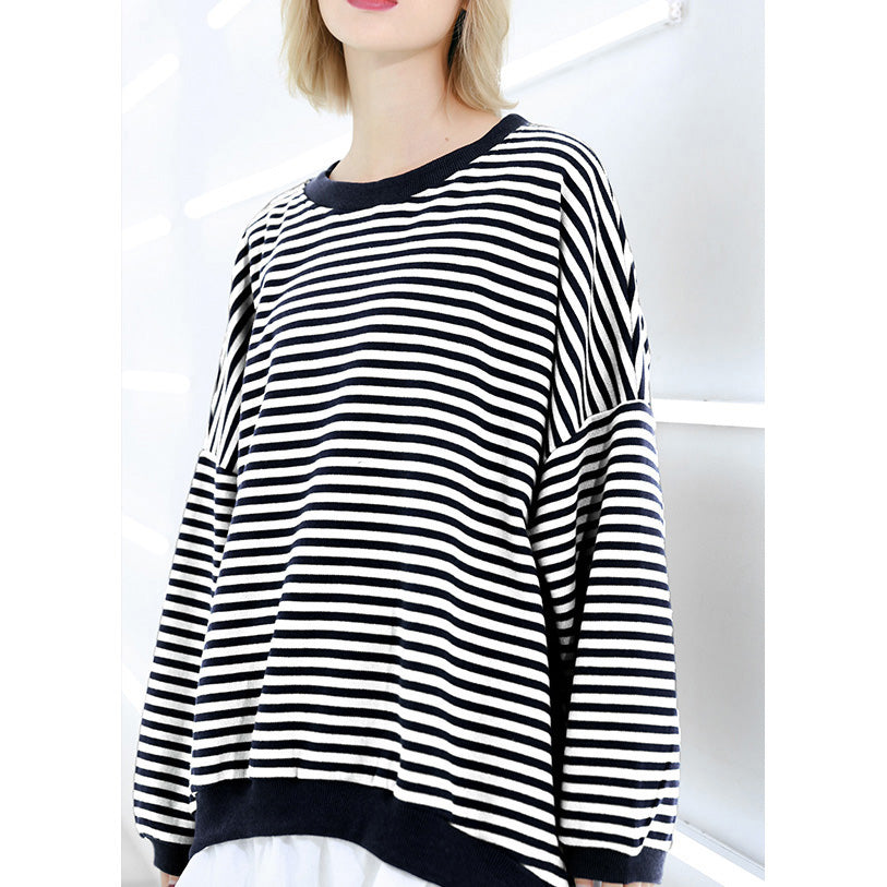 Art O-Ausschnitt Fledermausärmel Baumwolle feines Nähen gestreiftes Silhouette Top