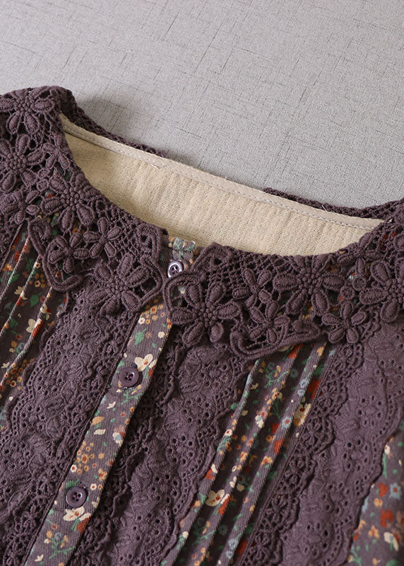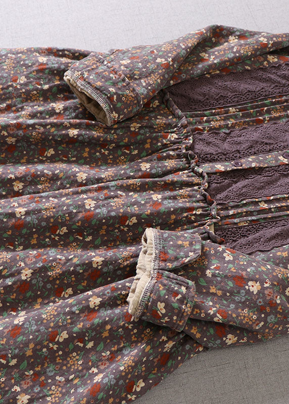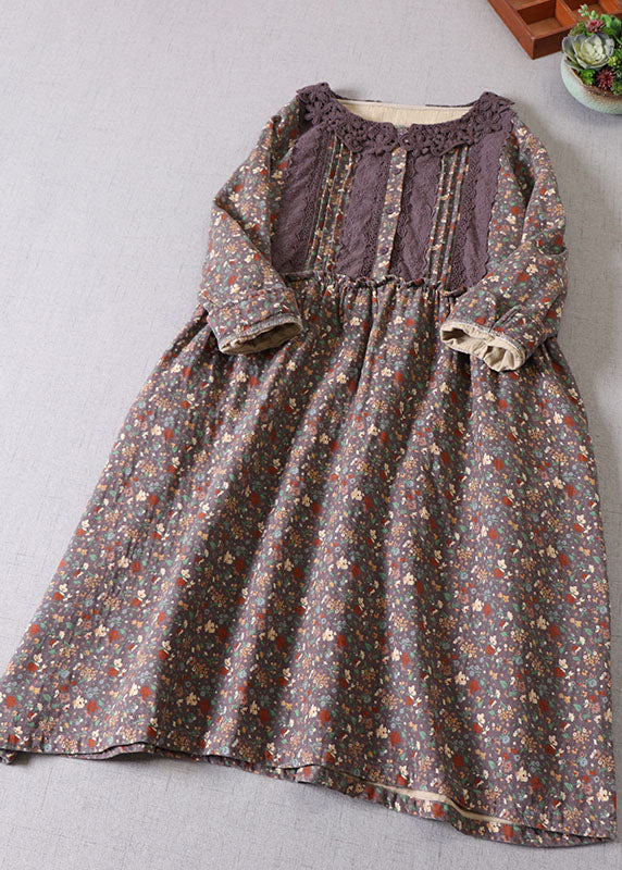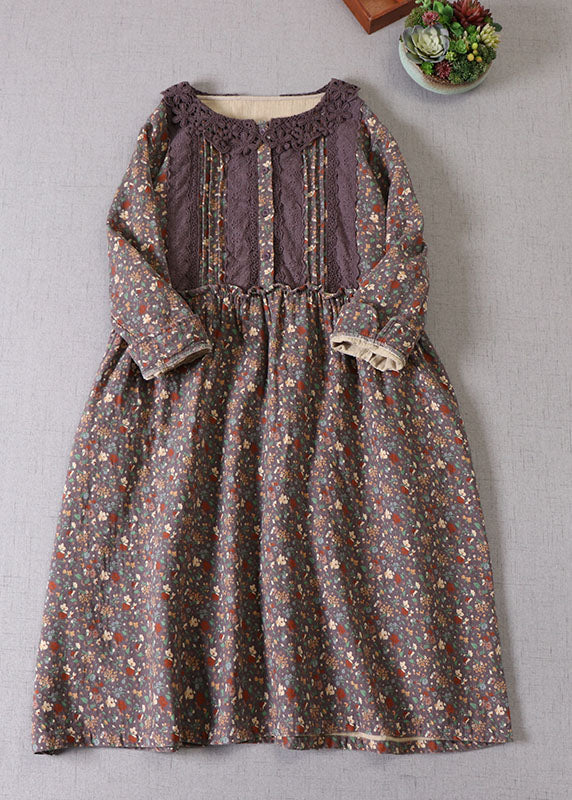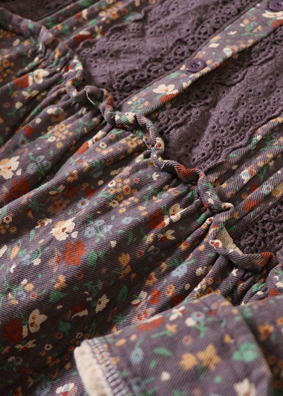 Art Lila Rüschendruck Baumwolle Urlaubskleid Frühling