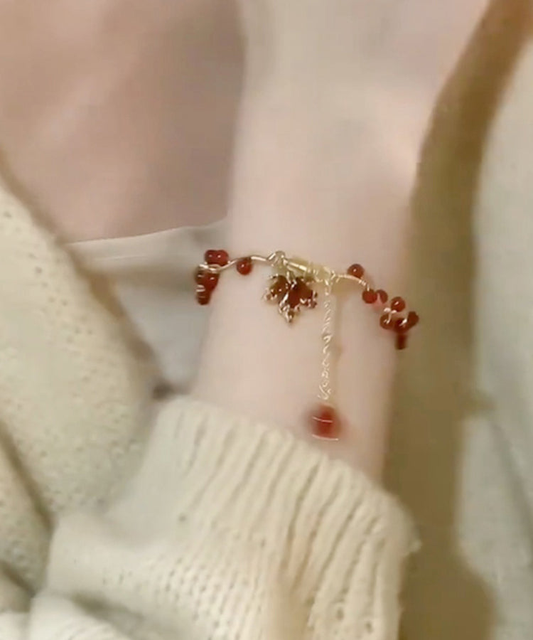 Art Red Crystal Jade Bamboo Joint Tassel Charm Bracelet