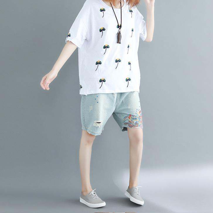 Kunst weiß baumwolle kleidung Mode Hülse o neck stickerei täglichen blusen