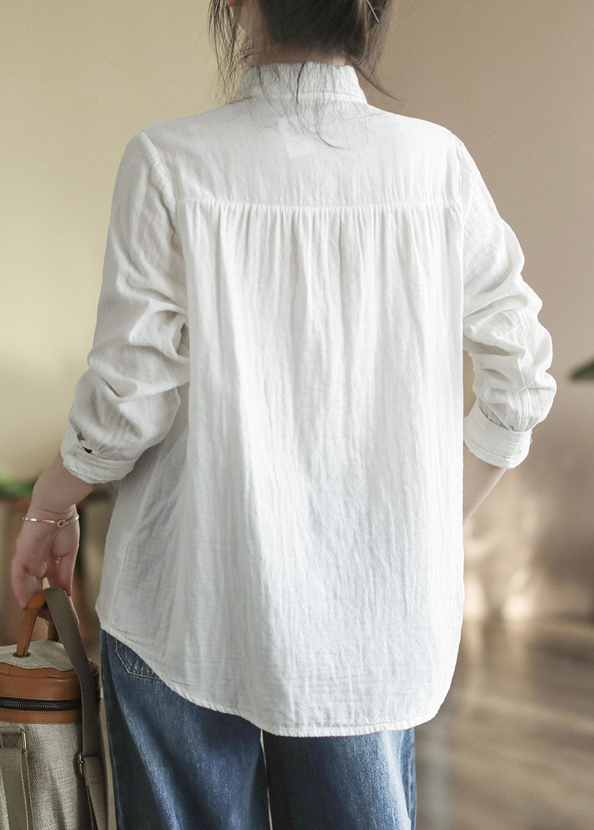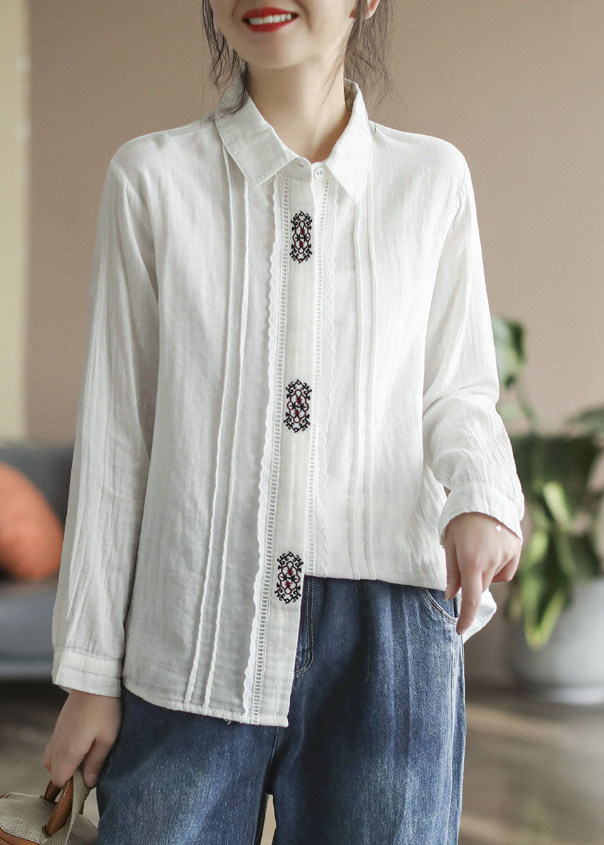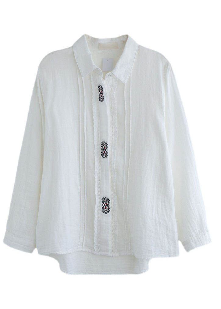 Art Weiß Peter Pan Kragen taste Bestickt Baumwolle Hemd Tops Frühling