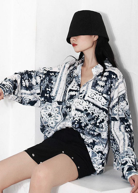 Kunst Weiß Peter Pan Kragen Print Chiffon Shirt Frühling