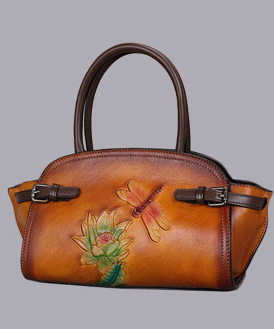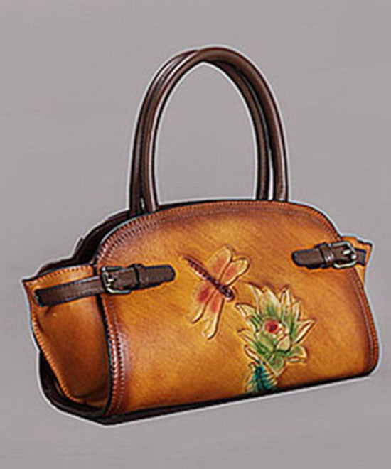 Art Gelbe Umhängetasche aus Kalbsleder mit Blumenmuster