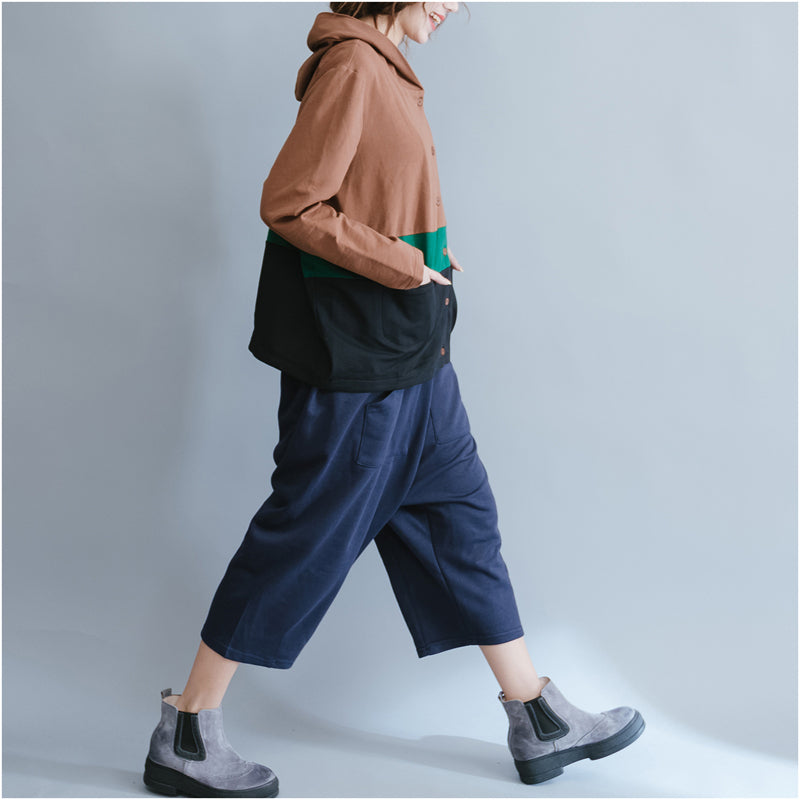 Herbstmode Patchwork Schokolade Baumwollmantel lose klobige Strickjacken Oberbekleidung