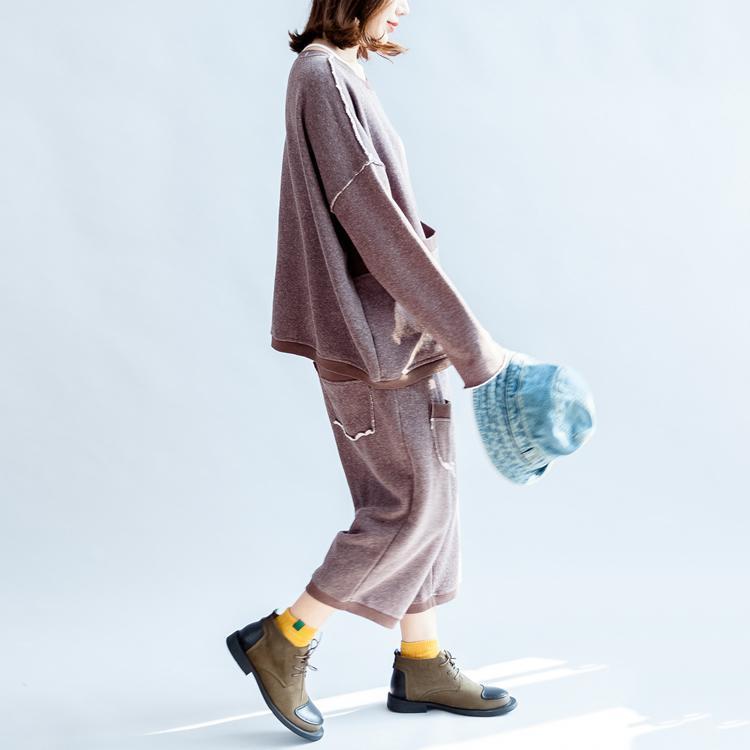 Herbstlich hellviolette lässige Baumwollstrickoberteile und lässige Strickhosen mit Taschen in Übergröße