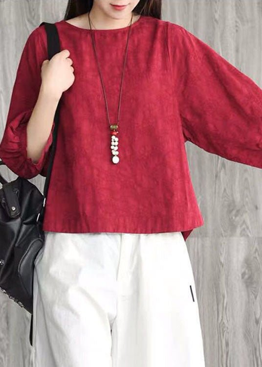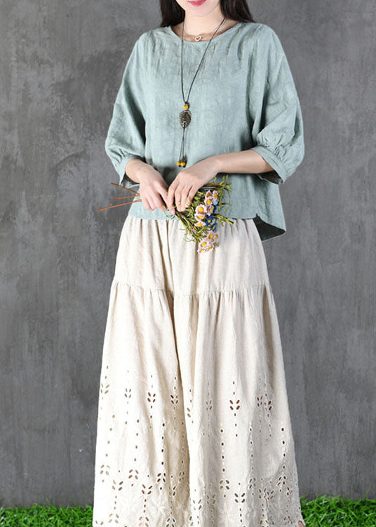Schönes Babyblaues O-Ausschnitt Jacquard Laternenärmel Herbst Shirt Tops