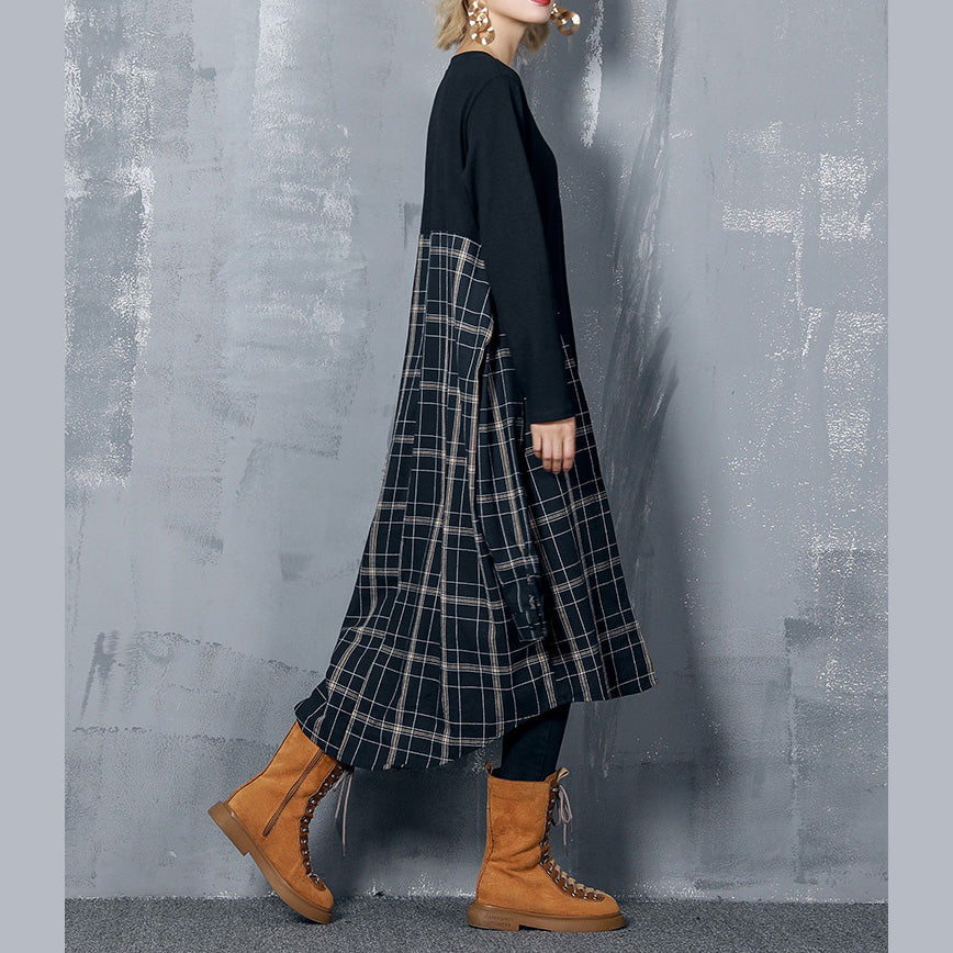Wunderschönes schwarzes Baumwoll-Outfit Plus Size Fabrics Patchwork Kaftan Frühlingskleid
