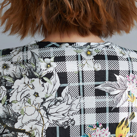 Schöne schwarze karierte Leinen-Baumwolle Long Shirts Bio Nähen O-Ausschnitt Print Baggy Shirts