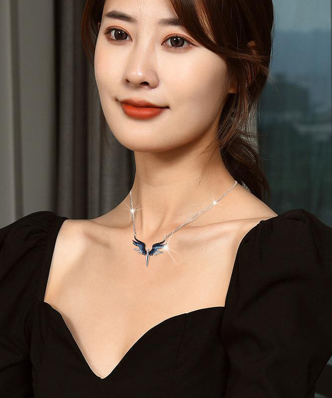 Beautiful Blue Zircon Wing Metal Pendant Necklace