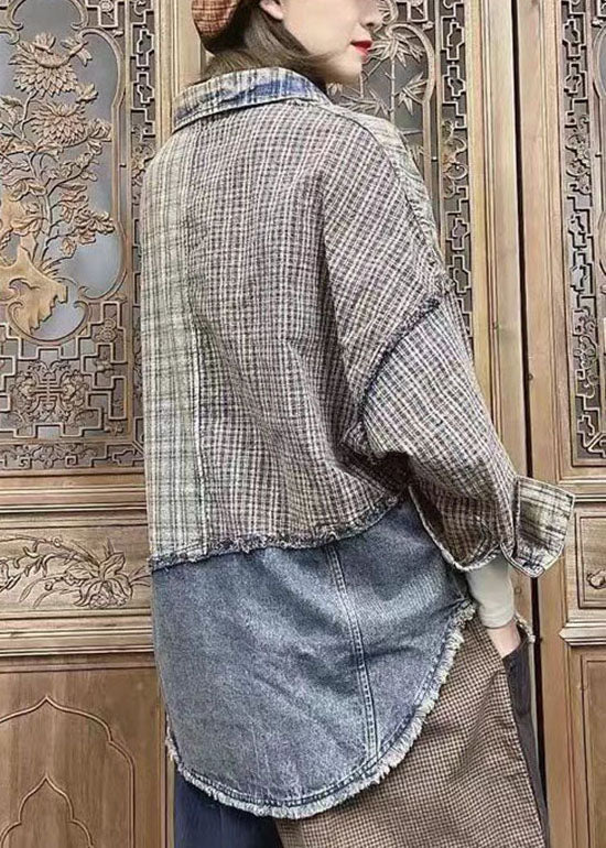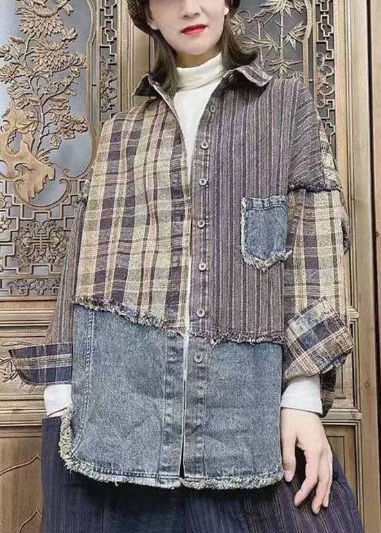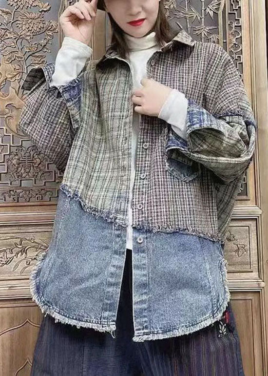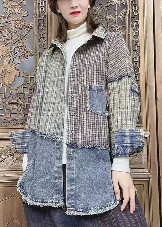 Schöne Colorblock Knopf Peter Pan Kragen Taschen Patchwork Mäntel Frühling
