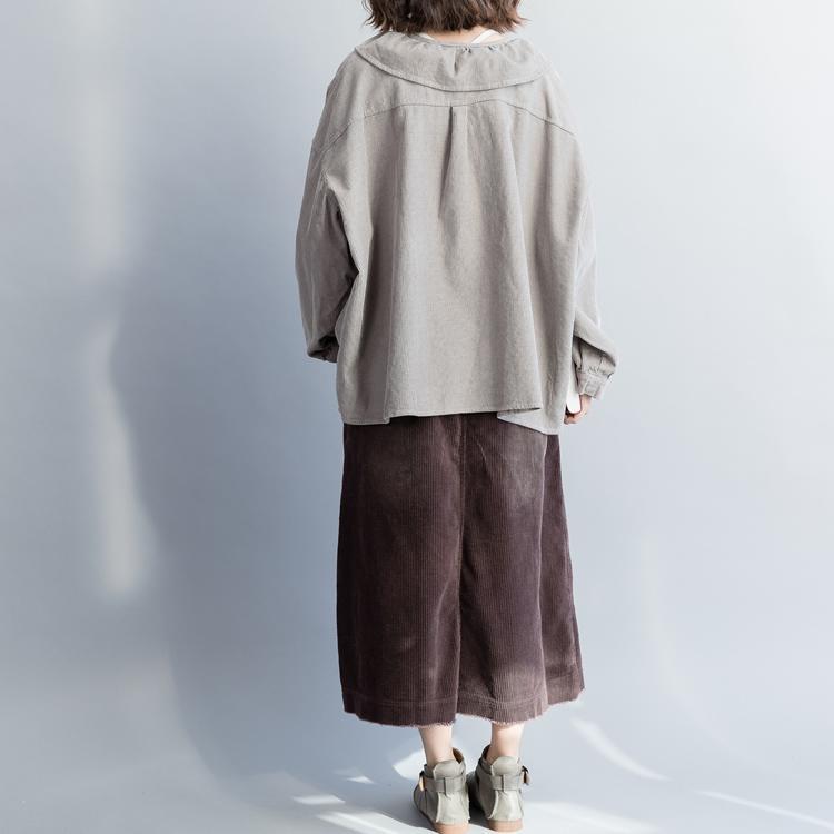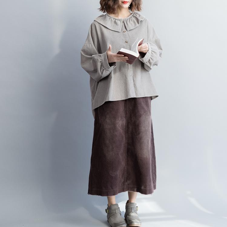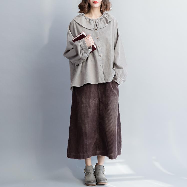 Wunderschönes graues Baumwoll-Tunika-Top in Übergröße mit lockeren Ärmeln und Rüschen