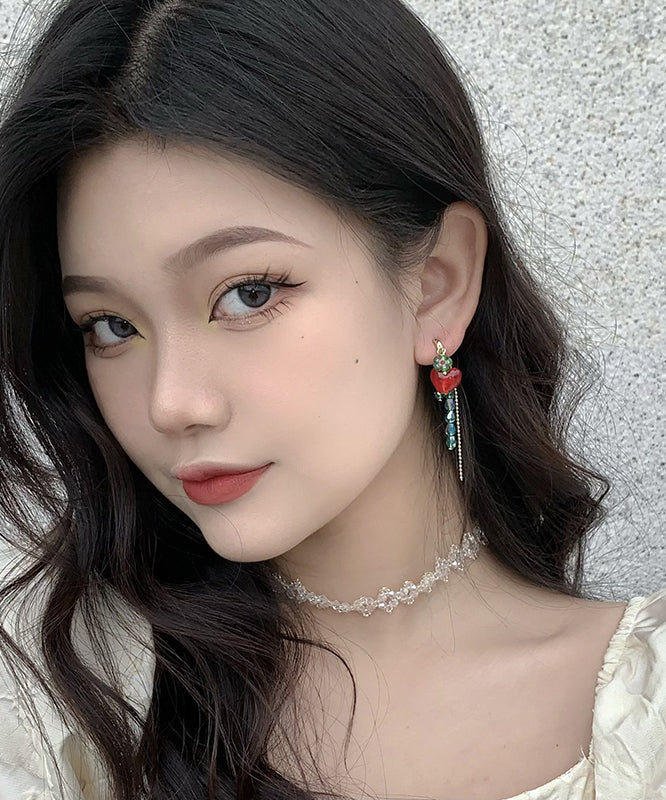 Beautiful Green Overgild Crystal Glass Floral Tassel Love Drop Earrings