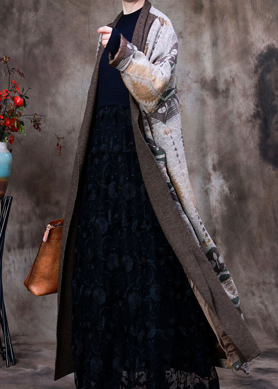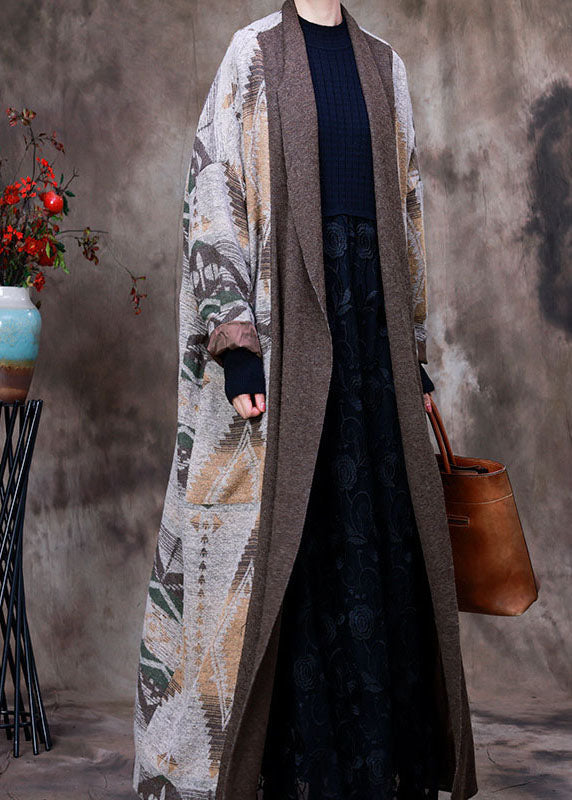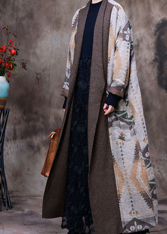 Schöne Grau Patchwork Print Strick Wollmäntel Winter