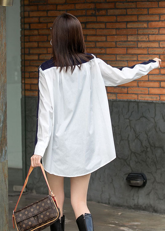 Wunderschönes, marineblaues Patchwork-Oberteil mit asymmetrischem Design und Knopfleiste