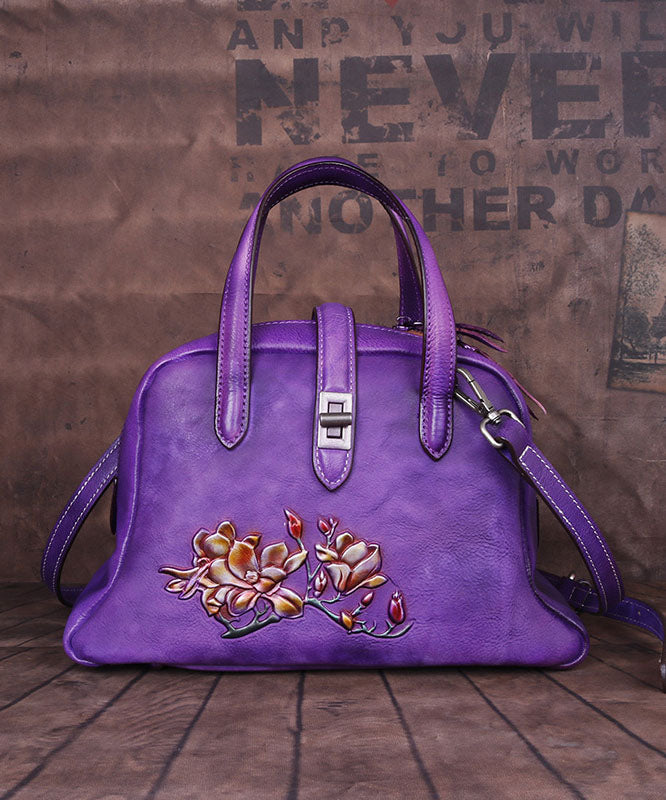 Wunderschöne Handtasche aus Kalbsleder mit Prägung in Lila