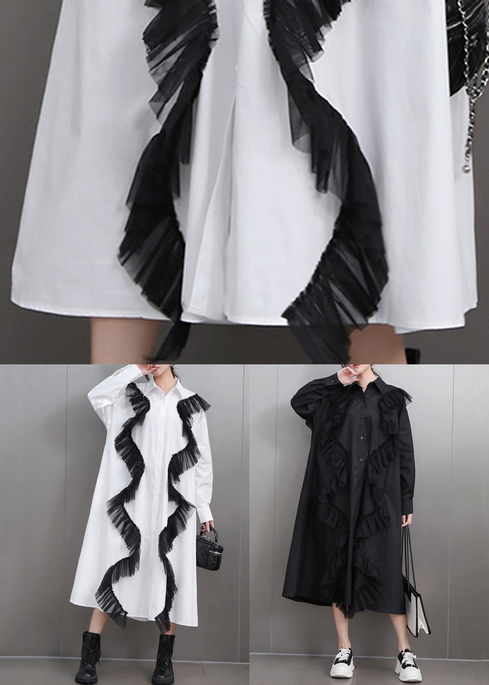 Black Button Tulle Patchwork Fall Shirt Dress Peter Pan Collar