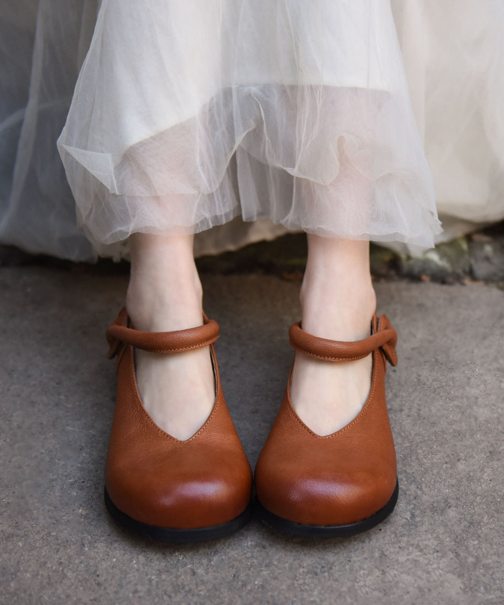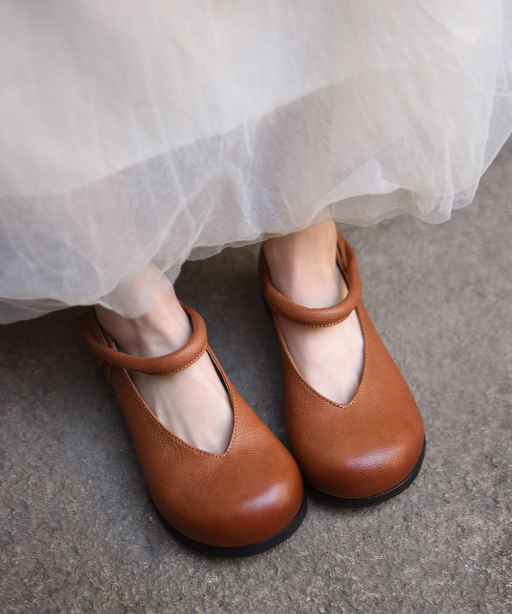 Black Cowhide Leather Women Splicing Buckle Strap Flats