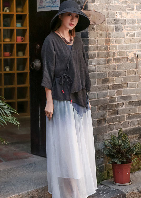 Schwarzer Baumwoll-Cardigan mit V-Ausschnitt, Cinched Spring