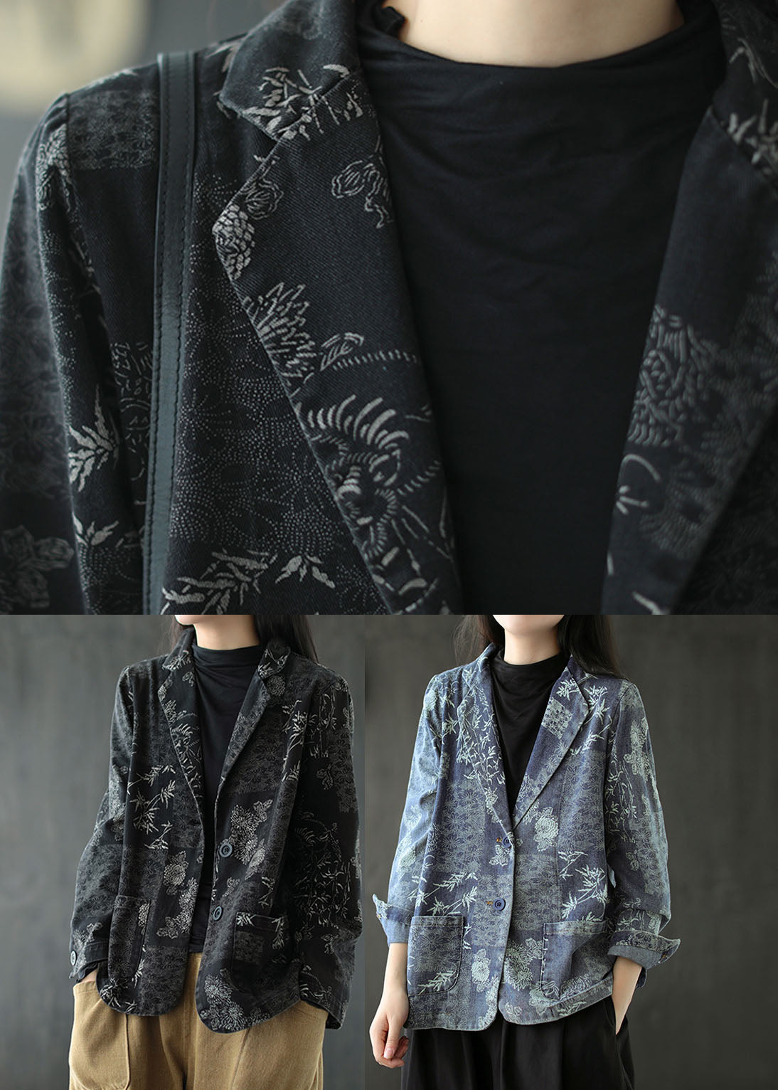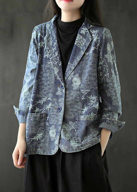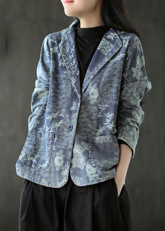 Blauer Druck Western-Stil Kleidung Mantel Tasche Langarm