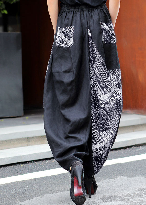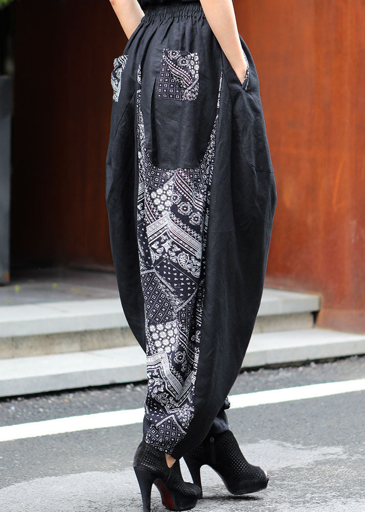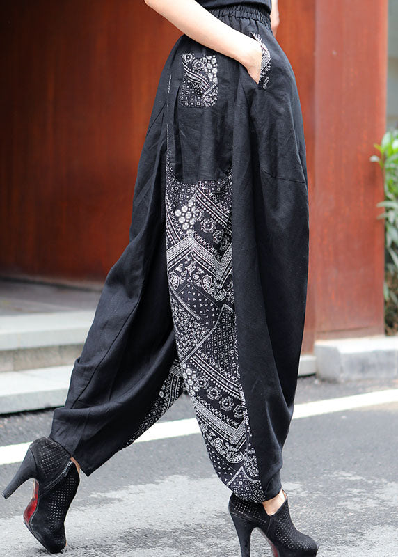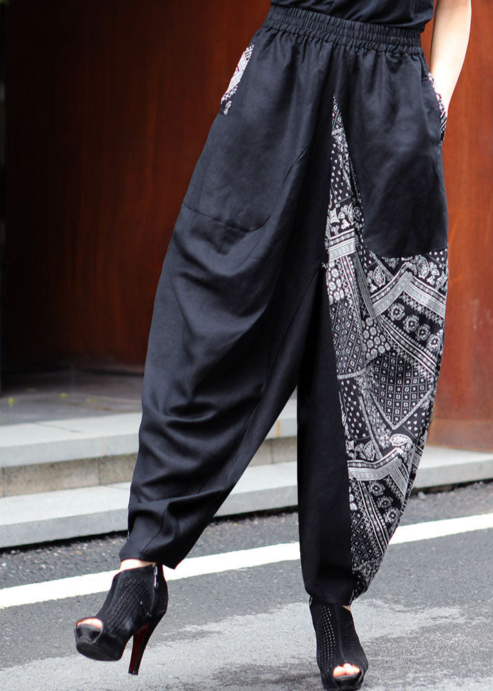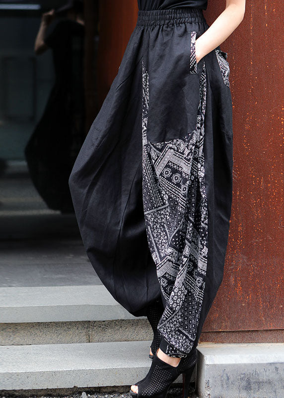Bohemian Schwarz Patchwork Print Hosen Frühling