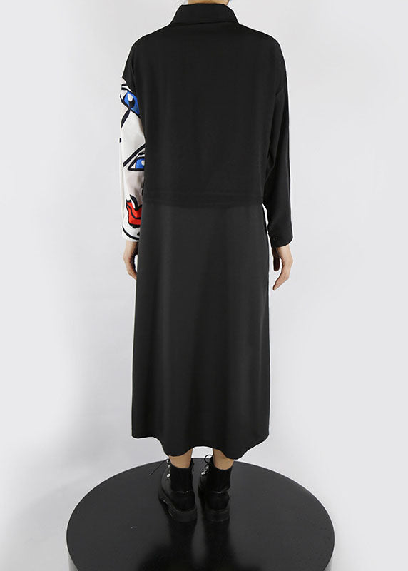 Böhmisches schwarzes Peter-Pan-Kragen-Knopfdruck-Hemdkleid Frühling