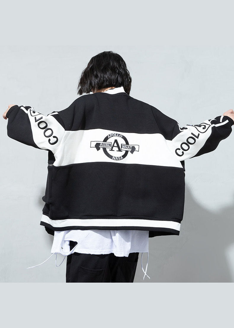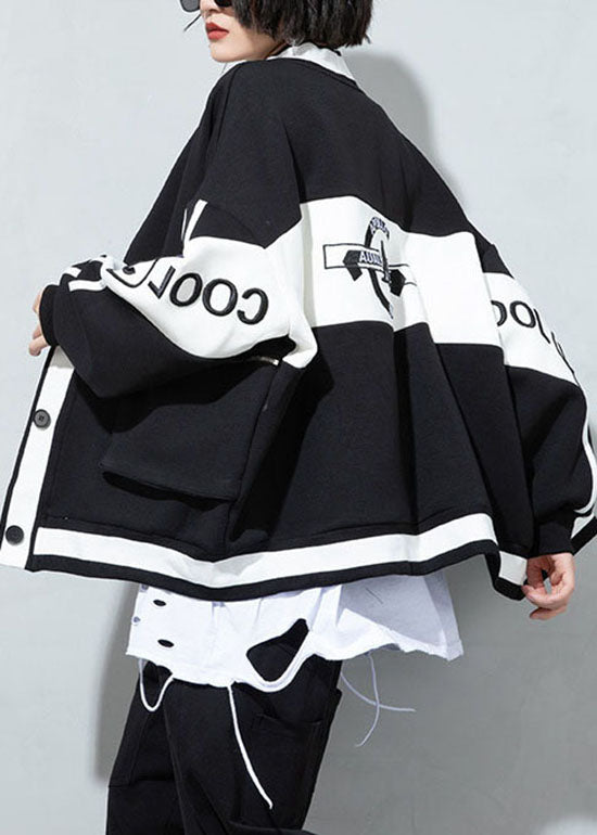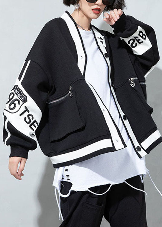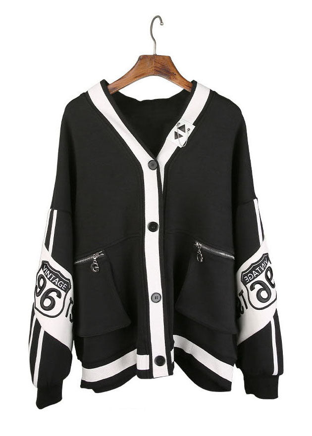 Bohemian Schwarz V-Ausschnitt Patchwork Knopf Mantel Frühling