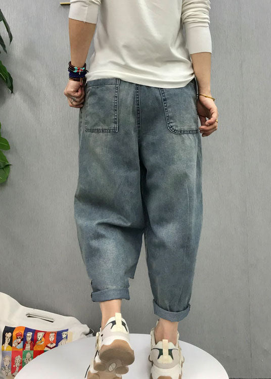 Bohemian Blau elastische taille patch applique denim Hosen Frühling