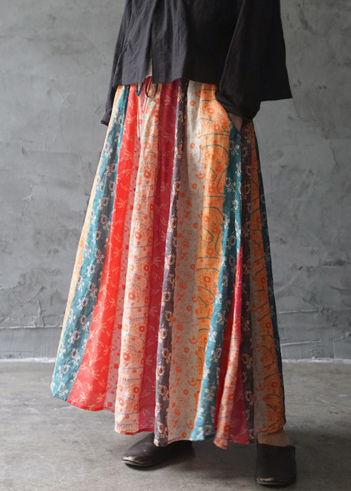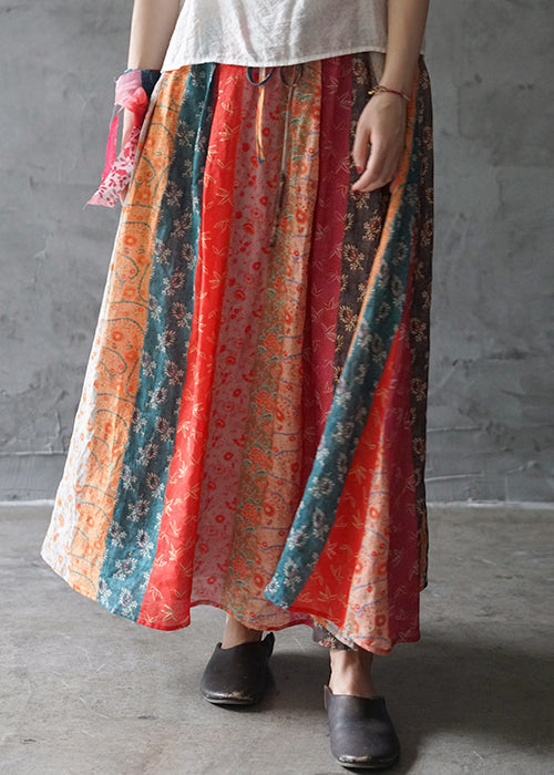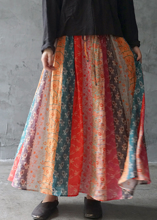 Bohemian Colorblock elastische taille kordelzug tasche Leinen Röcke Frühling