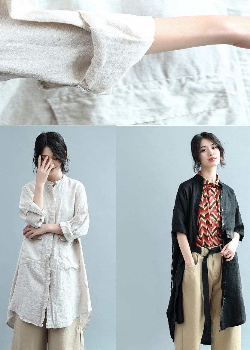 Boho Revers Button Down Baumwolltop Silhouette Bio Mode beige Plus Size Kleidung Blusen Sommer