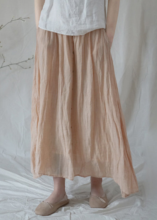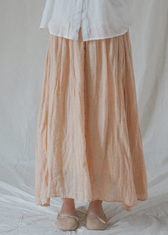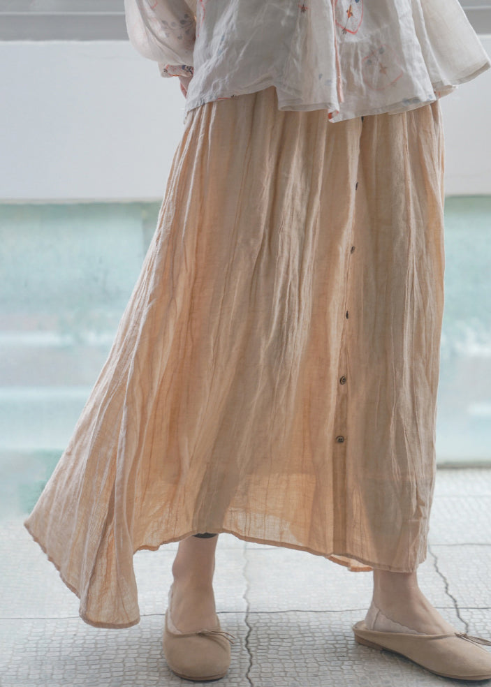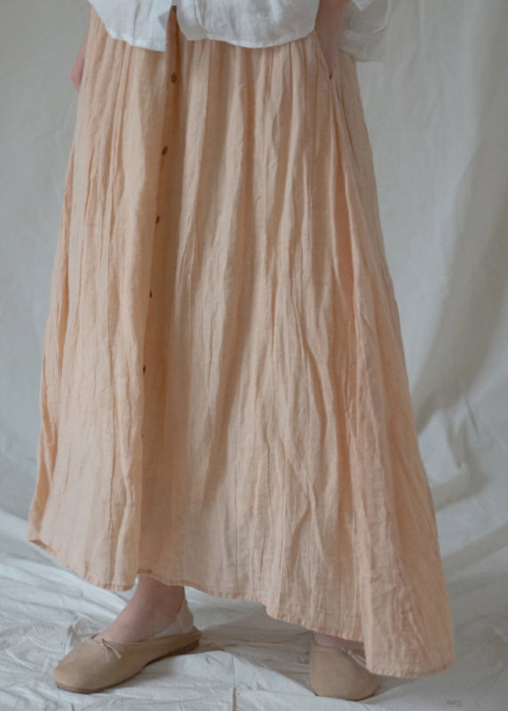 Bohemian Orange elastische taille faltig Leinen A-linie Röcke Frühling