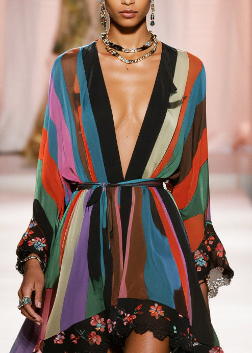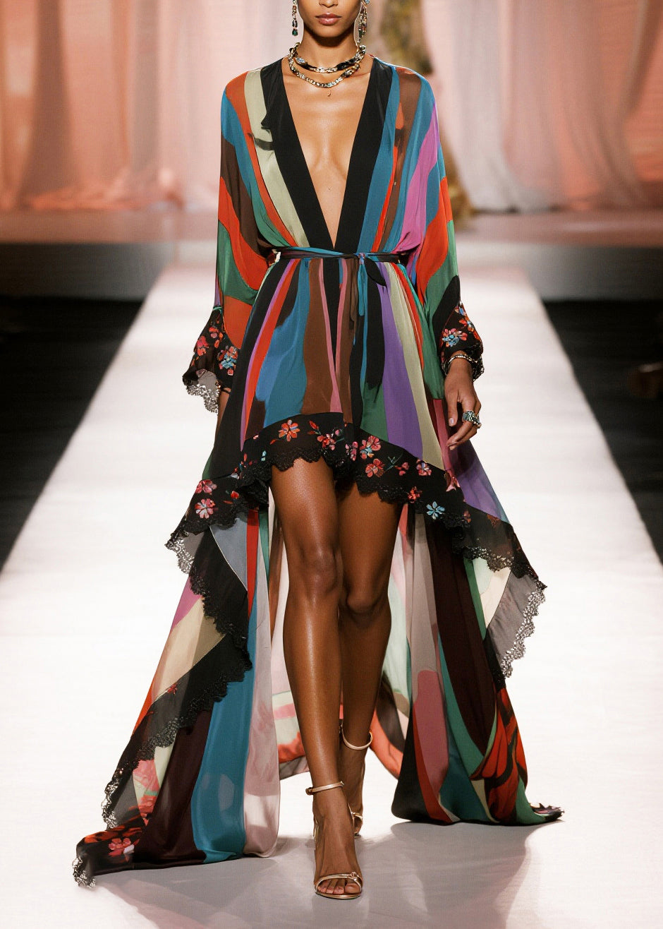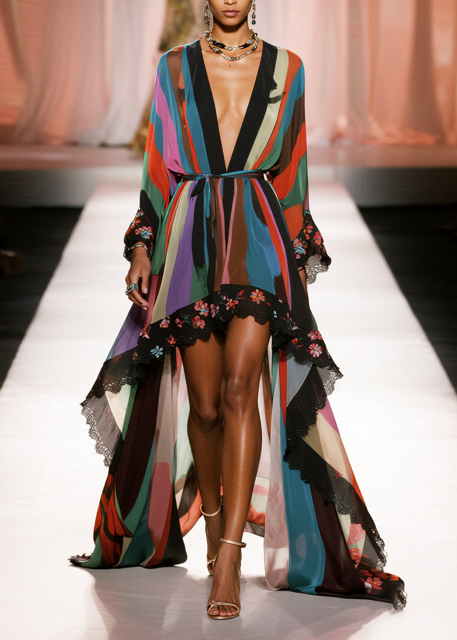 Bohemian Print Exra Large Hem Draping Chiffon Tunic Cardigan Summer