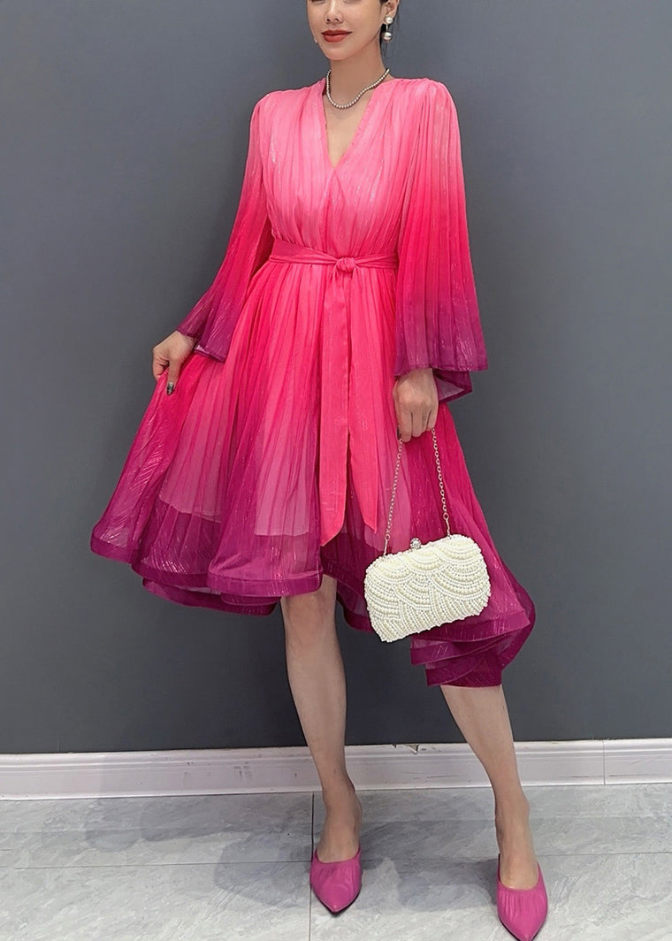 Bohemian Red V Neck Layered Long Dresses Fall