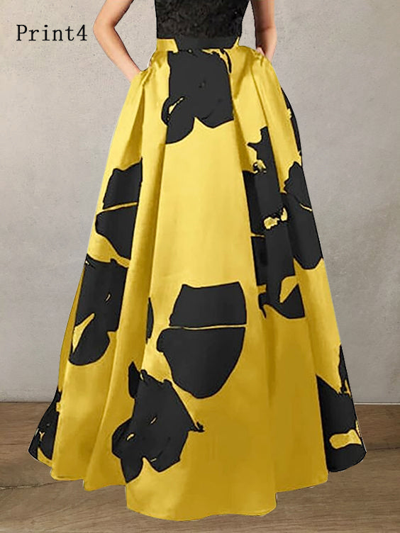 Bohemian Weiß - Rot Print Hohe Taille Taschen Blumendruck Baumwolle A Linie Rock Sommer