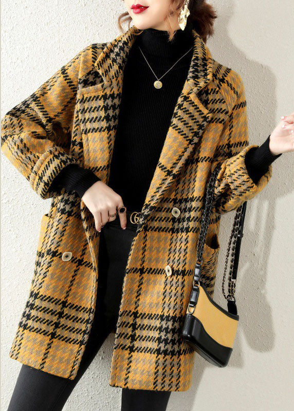 Böhmischer gelber Peter-Pan-Kragen-Karierter Mantel Winter