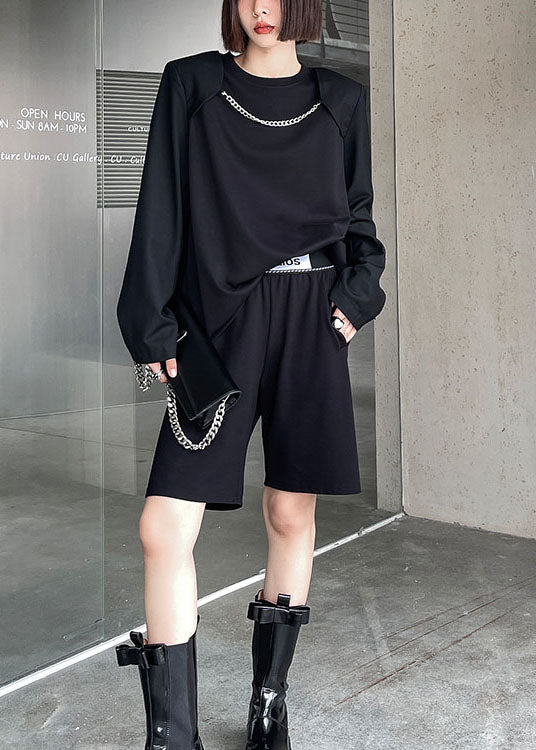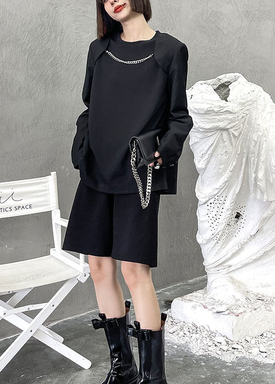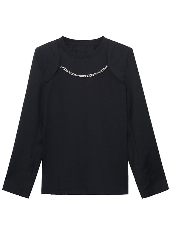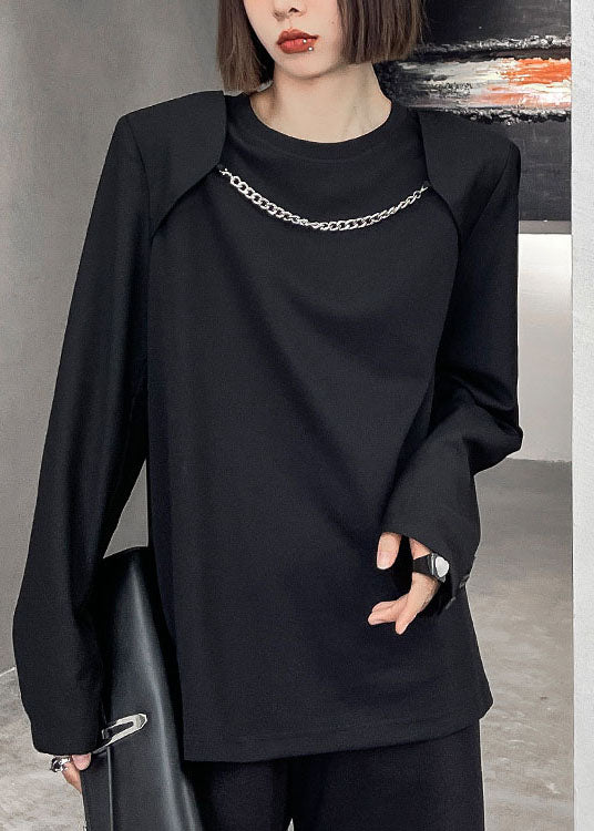 Boho Schwarzes O-Ausschnitt Lockeres Lässiges Langarm-Oberteil für den Herbst