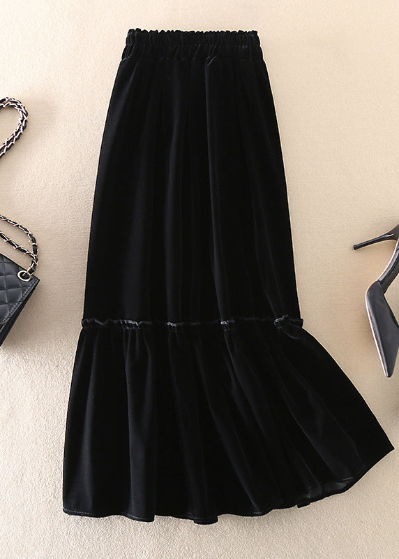 Boho Schwarz Patchwork Seidenveloursrock Frühling