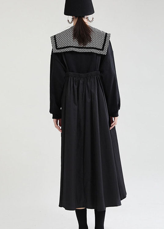Boho Black Print Patchwork asymmetrisches Design mit Reißverschluss Herbstkleid