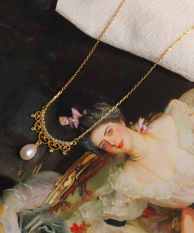 Boho Gold Alloy Zircon Leace Pearl Pendant Necklace