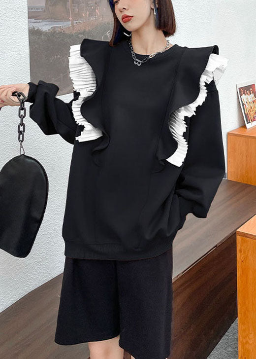 Boho Khaki O-Ausschnitt Retro Rüschen Patchwork Herbst Sweatshirt Street Wear