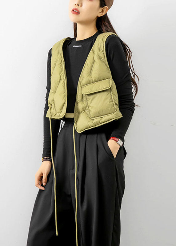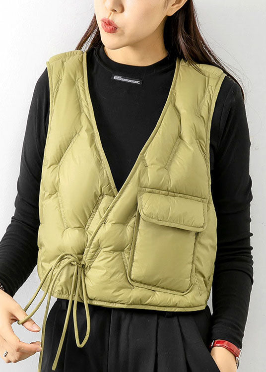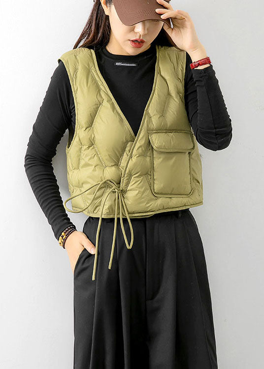 Boho Hellgrün V-Ausschnitt Taillenbund Mode Winter Ärmellose Daunenweste