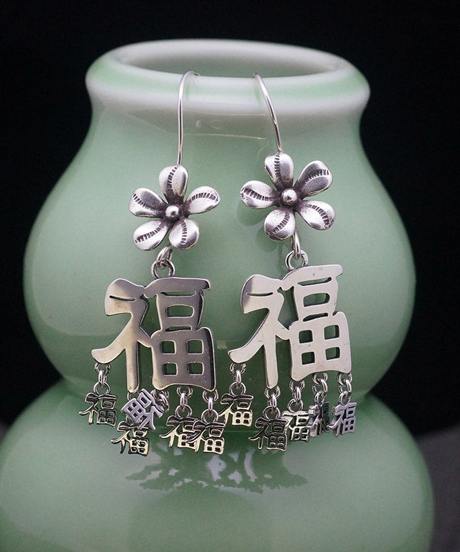 Boho Silk Sterling Silver Blessing Floral Tassel Drop Earrings