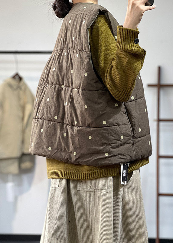 Boutique Army Green Oversized Dot Print Feine Baumwolle gefüllte Weste Tops Winter