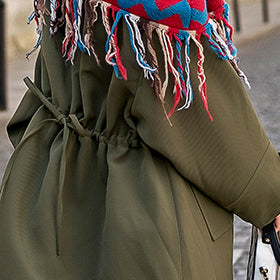 Boutique armee grün patchwork Plaid Winter mantel übergröße o neck 2018 taschen mäntel