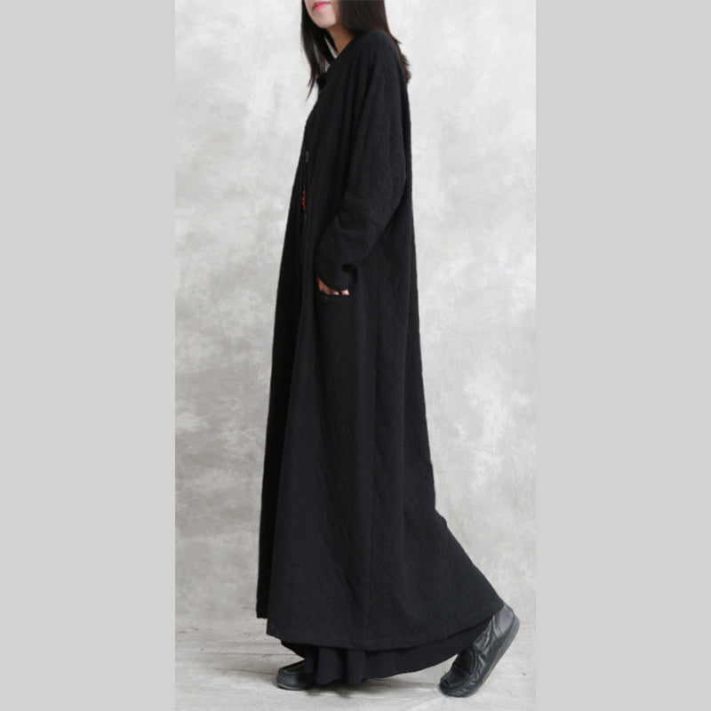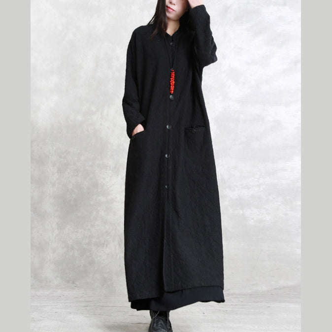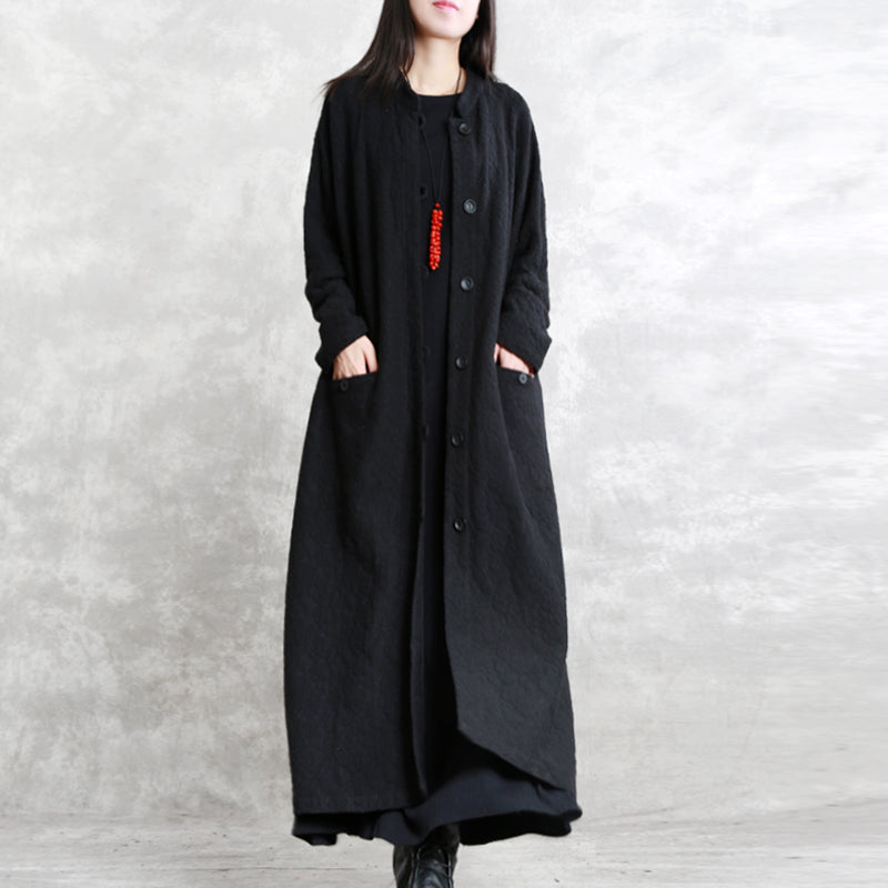 Boutique schwarzer Mantel in Übergröße Stehtaschen Maximantel 2018 Langarm Baggy Mäntel