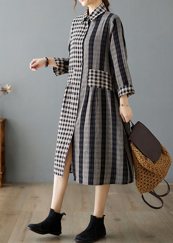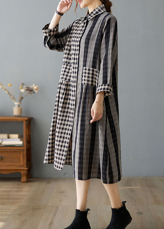 Boutique Schwarzes Festtagskleid mit Peter-Pan-Kragen und Karomuster, lange Ärmel